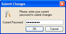 The Submit Changes form appears. Enter your current password in the Current Password field and click OK: